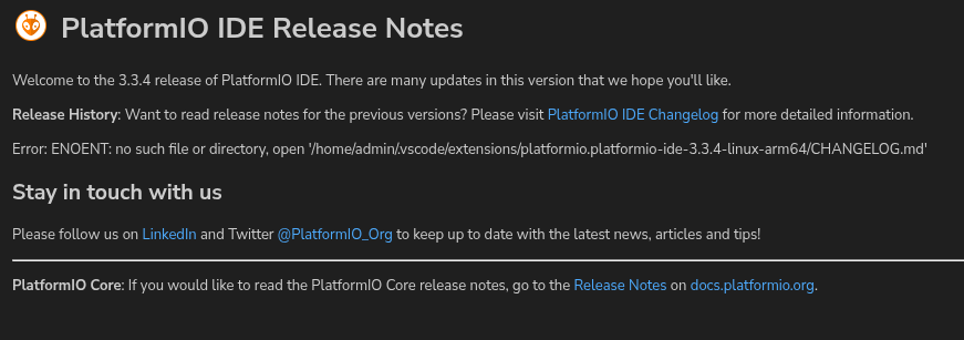 Ça prend quelques minutes et ça affiche la page de garde PlatformIO.
